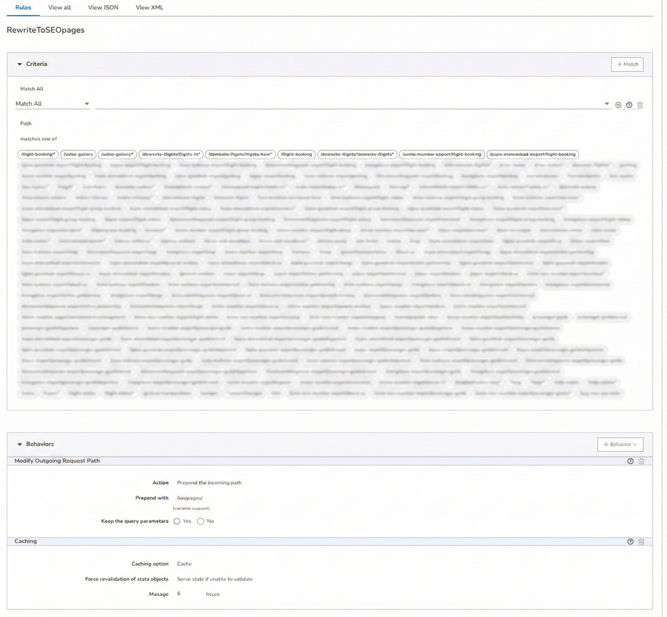 Negation Rules (Exclusions): A built-in "Except" or "Exclude" toggle for specific sub-paths (e.g., Match /cab-booking/* but exclude /cab-booking/cancellation/*).